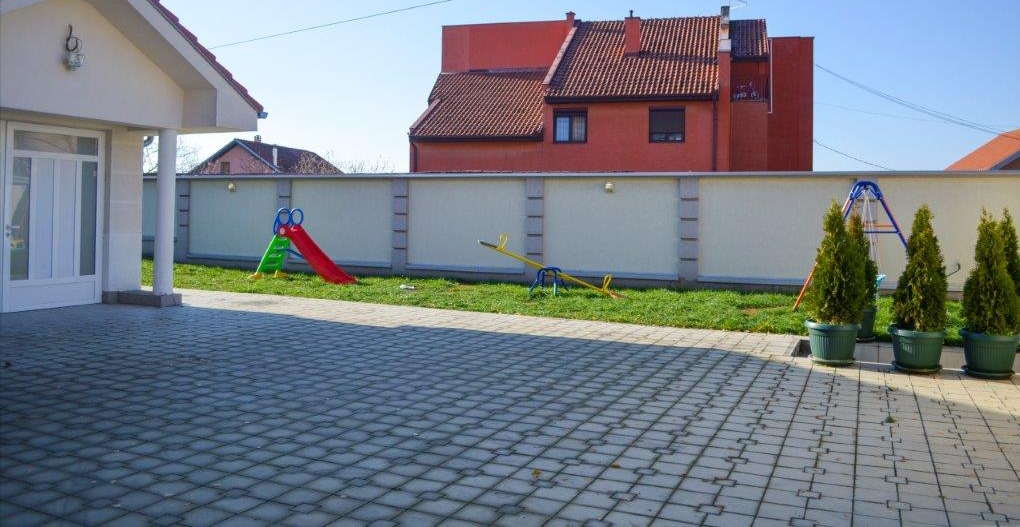 U okviru kuće nalazi se prelepo uređeno dvorište koje je opremljeno odgovarajućim igračkama, ljuljaškama, klackalicama i sl.